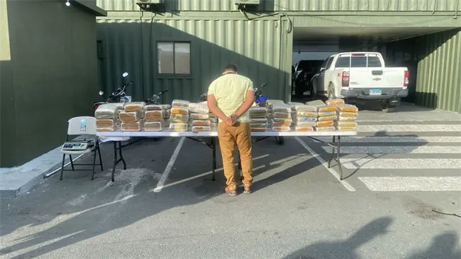 El cargamento fue descubierto dentro de un camión KIA blanco, año 2013, detenido en el puesto de chequeo de Los Pilones. El conductor, identificado como Augusto Abreu Beltre, de 39 años, fue arrestado en el lugar tras encontrarse en el vehículo un compartimiento secreto o “caleta”, donde se ocultaban 110 paquetes del vegetal.